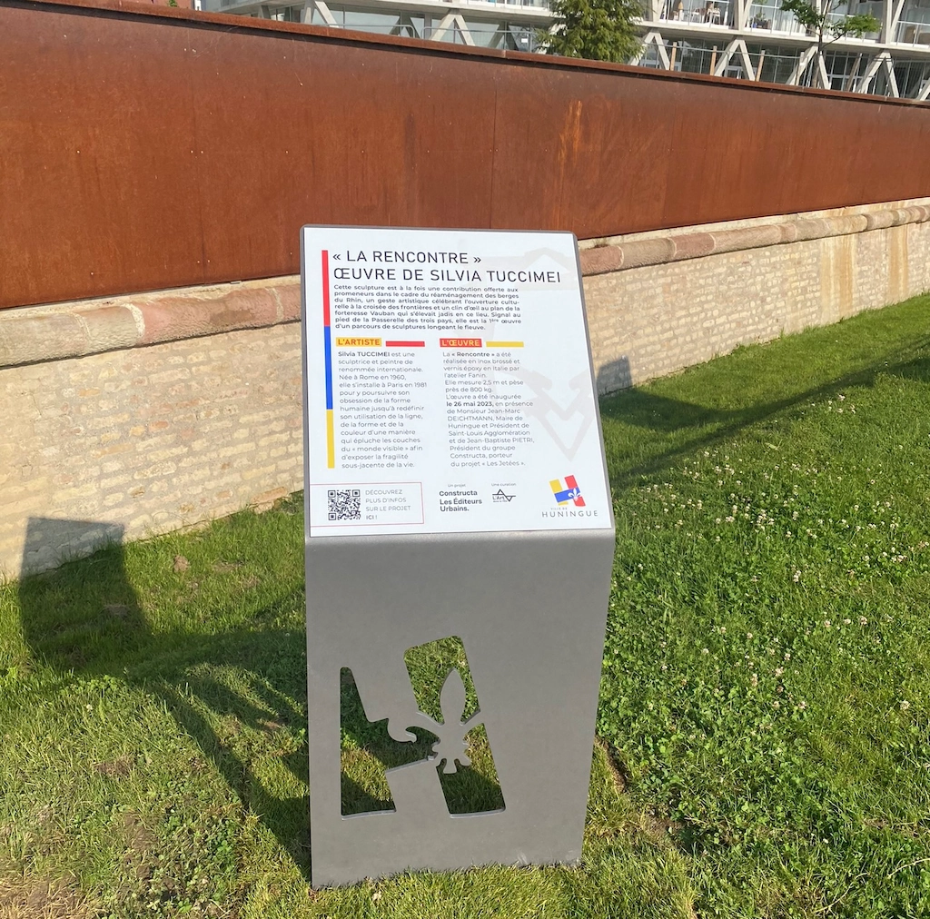 Cette première œuvre d’art « Le Rencontre » réalisée par l’artiste Italienne Silvia Tuccimei est un hommage à la forteresse Vauban, véritable héritage cédé par le passé à la ville de Huningue.